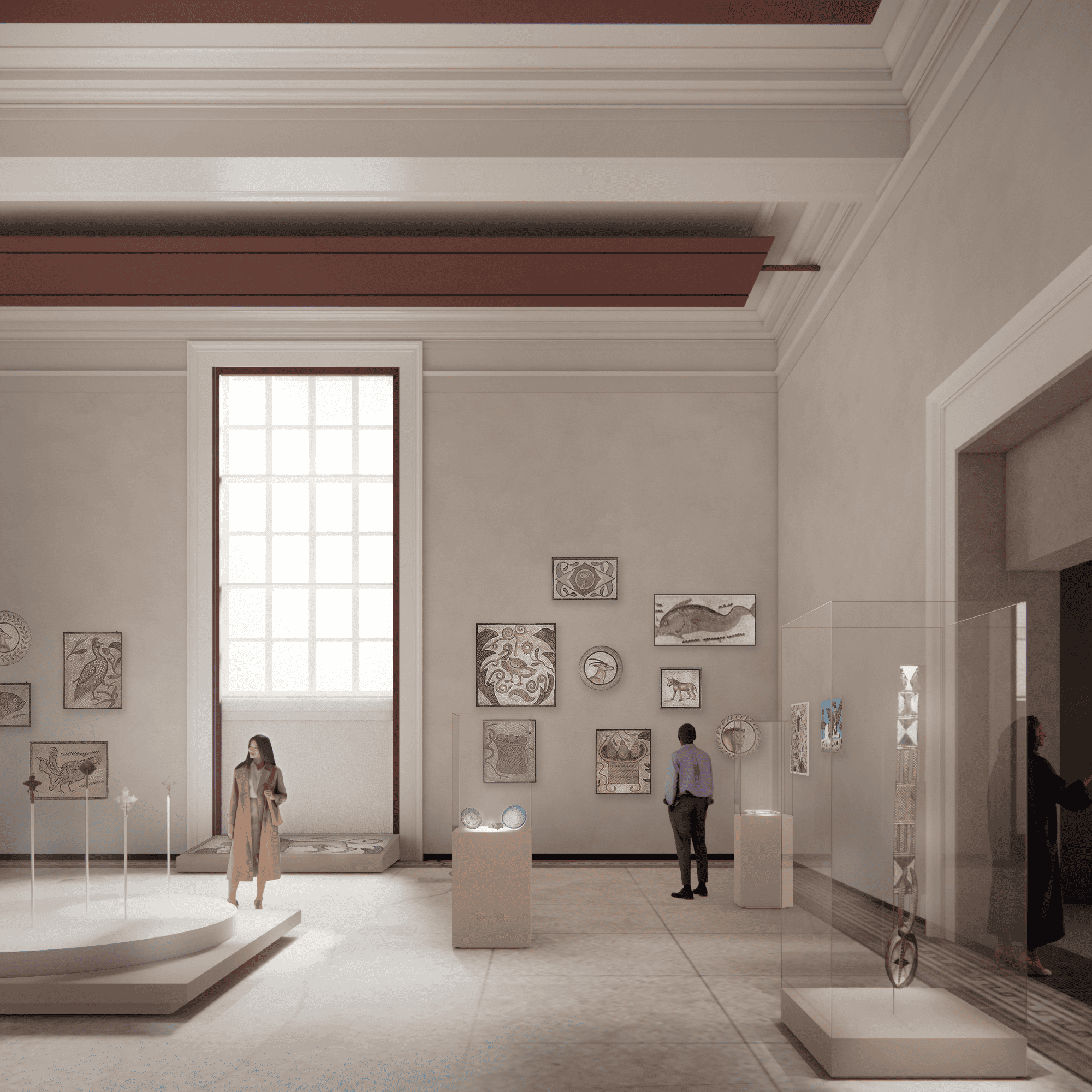 This approach creates a dynamic interplay across the gallery sequence: historic plaster ceilings and moldings coexist with contemporary materials, traditional proportions frame modern display strategies, and natural daylight mingles with precisely calibrated artificial illumination. The architectural heterogeneity—rather than being smoothed over or erased—becomes an asset, mirroring the collection's own embrace of diversity across time, geography, and artistic tradition.